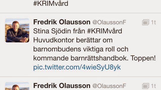 Ser man på. Då är jag, för första gången i mitt liv, omnämnd på Twitter. Typ det enda sociala medium som jag inte tagit till mitt hjärta. Det känns som att man måste vara så himla klok och politisk för att twittra. Det räcker liksom inte att slänga upp en bild på en portion ugnsstekt falukorv eller en spännig träningsbild från gymmet. Twitter ställer krav på seriositet och klokskap. Iallafall i min värld.